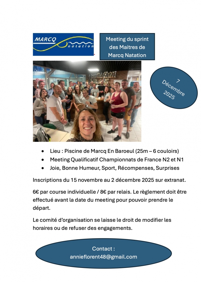 Ce dimanche 7 décembre aura lieu le Meeting du Sprint des Maîtres à Marcq-en-Baroeul.