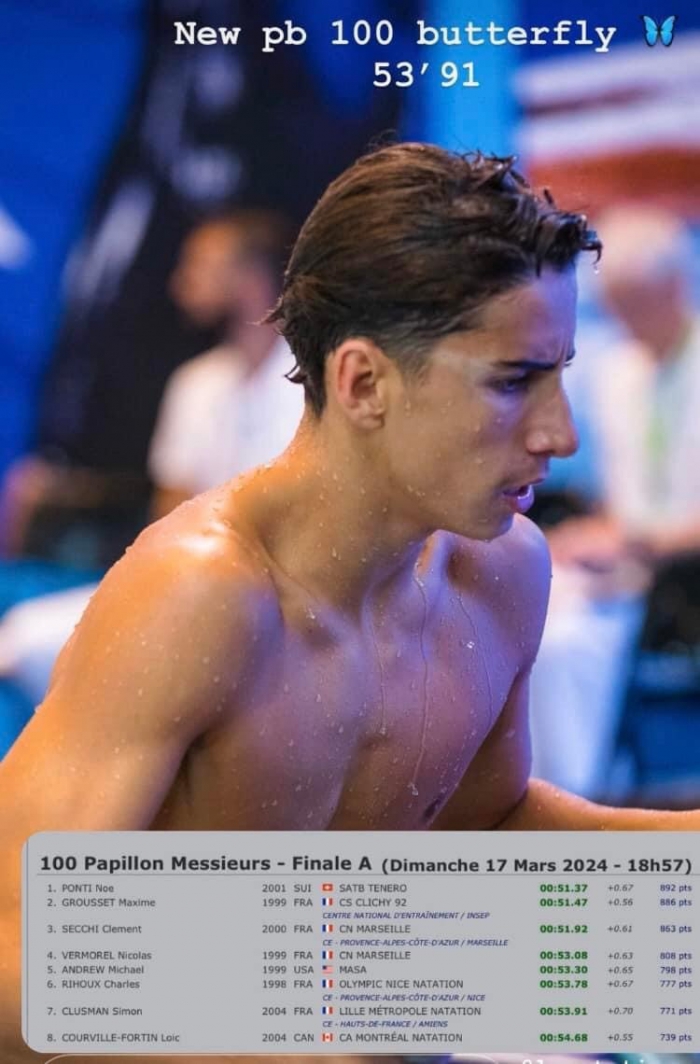 BRAVO à Adrien ESPRIET qui réalise un 100% de MPP sur cette compétition avec des temps très intéressant pour la suite de la saison (3'59"67 au 400NL, 8'06"60 au 800NL et 15'33"30 au 1500NL)