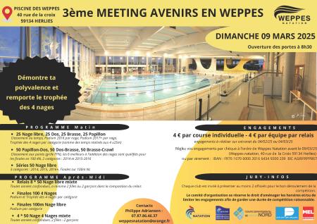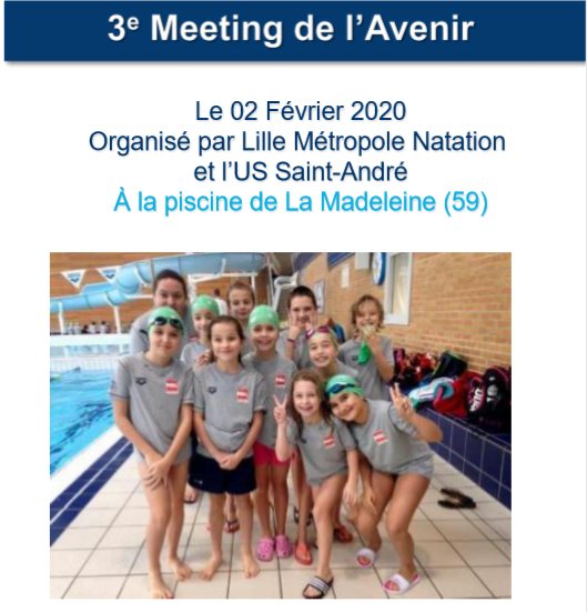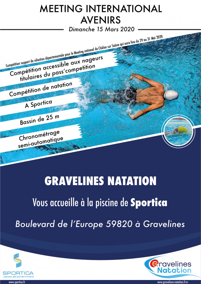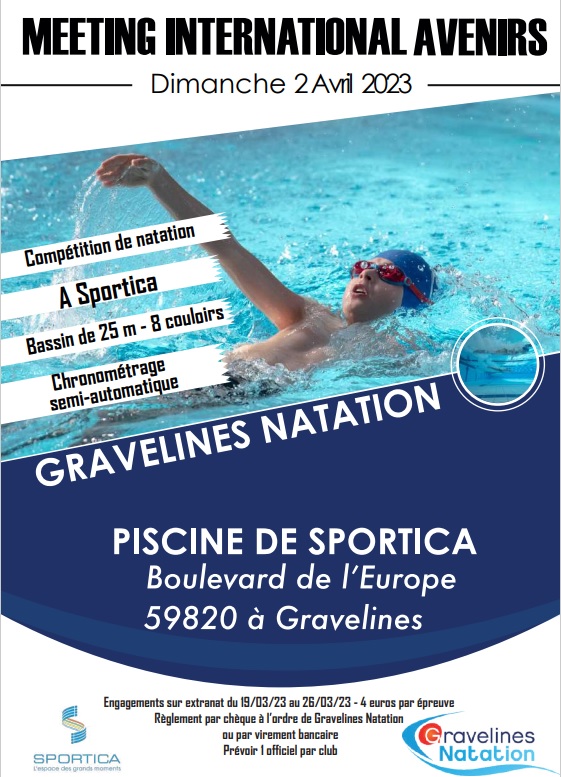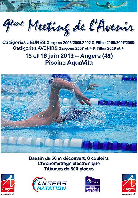 Ce Meeting International se nageant sous le format séries/finales servira pour sélectionner l'équipe départementale Avenir qui participera à Angers au Meeting de l'Avenir les 15 et 16 Juin. Nous serons donc tous derrière nos jeunes futurs champions et nous ne ménagerons pas nos encouragements.