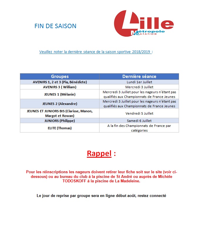 Nous comptons sur votre présence afin de pouvoir vous informer sur les perspectives envisagées pour la rentrée en fonction des créneaux qui pourraient nous être octroyés à la piscine Camille Muffat de la Porte des Postes